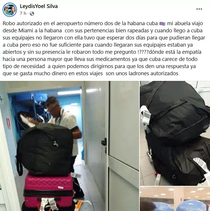 Otro incidente notable involucró a una anciana que viajó desde Miami a La Habana. Su equipaje llegó con retraso y, al recibirlo, descubrió que había sido saqueado, perdiendo medicamentos esenciales y otros artículos de valor. La falta de mecanismos efectivos para reclamar y la creciente corrupción en las terminales aeroportuarias agravan la situación, dejando a los ciudadanos en una posición de vulnerabilidad.​