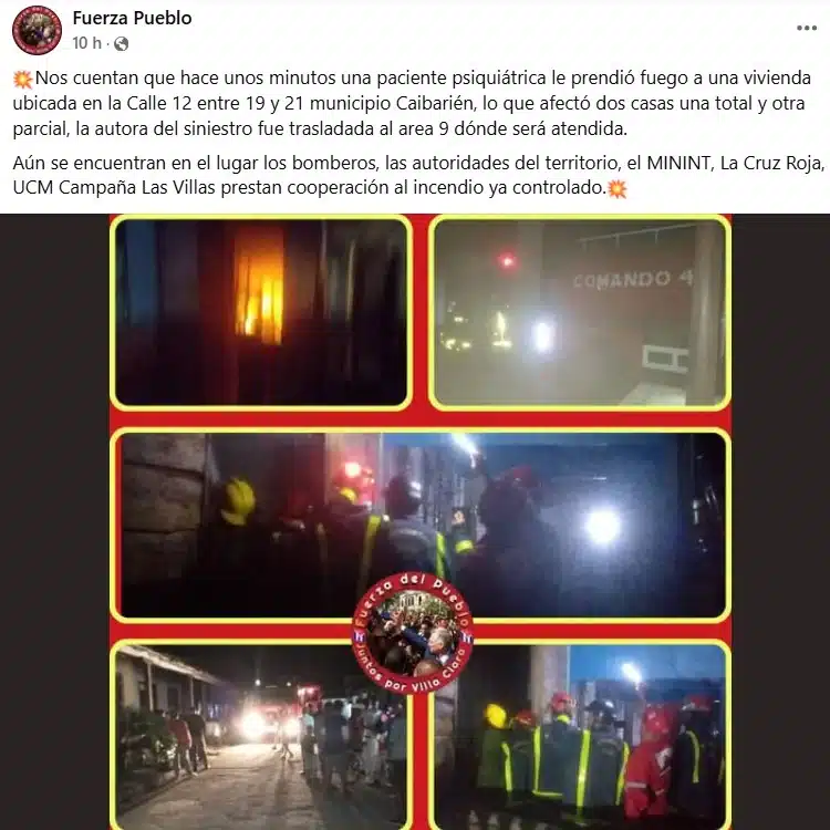 La escasez de medicamentos psiquiátricos en Cuba ha tenido consecuencias trágicas. En Caibarién, hace apenas unas horas – pudiera decirse – una paciente psiquiátrica provocó un incendio que destruyó una vivienda y dañó parcialmente otra. Aunque no hubo heridos, el incidente puso de manifiesto los riesgos asociados a la falta de tratamiento adecuado para personas con trastornos mentales. ​