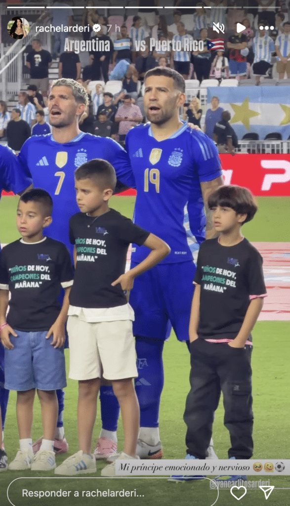 Pero la jornada trajo todavía más motivos de felicidad para la familia. El pequeño Yan Carlos, hijo de la pareja, tuvo el privilegio de salir al campo de juego de la mano del futbolista argentino Nicolás Otamendi, una experiencia que Rachel calificó como “inolvidable”. Argentina terminó imponiéndose con un contundente 6 a 0, coronando una noche que combinó fútbol, música y emociones familiares.