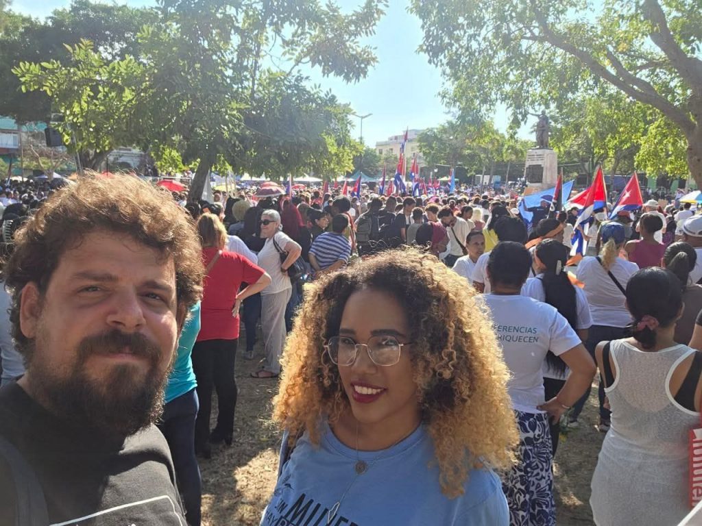La escena del martes mostró banderas, consignas y un mensaje alineado. También hubo espacio para el consabido postureo en redes, como la protagonizada por Michel Torres Corona y Gabriela Fernández, del programa Con Filo. Ambos, habituales en la descalificación pública de mujeres cubanas con posturas críticas, han recurrido de forma reiterada a campañas de descrédito que buscan erosionar la credibilidad de voces del disenso bajo el argumento de la “manipulación mediática”.
