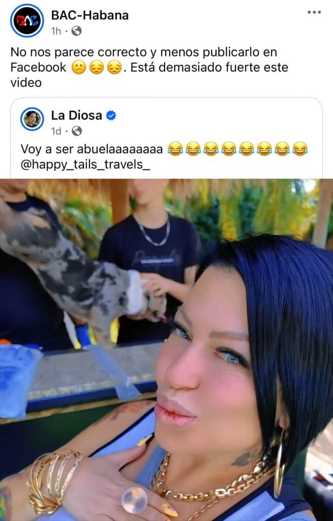La publicación compartida en redes sociales por la intérprete de ‘La papaya de 40 libras’ ha generado en muchos “una mezcla de incomodidad, rechazo y hasta indignación”, señaló en un comunicado la organización Bienestar Animal Cuba (BAC).