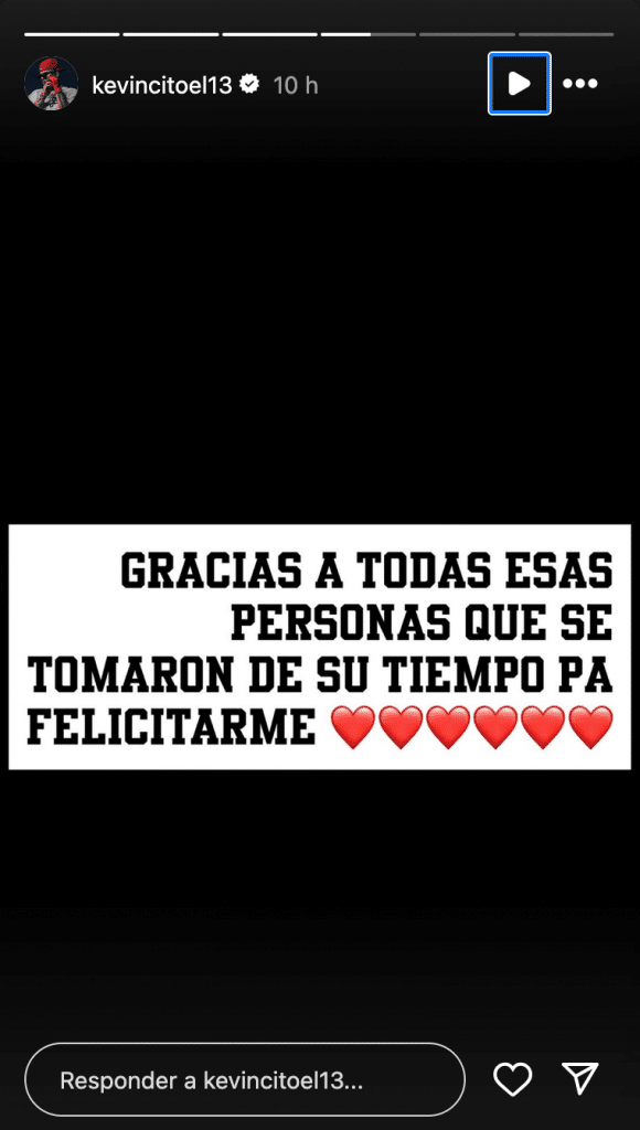 Desde su perfil de Instagram, Kevincito agradeció las felicitaciones recibidas tras el anuncio: “Gracias a todas esas personas que se tomaron su tiempo para felicitarme”.