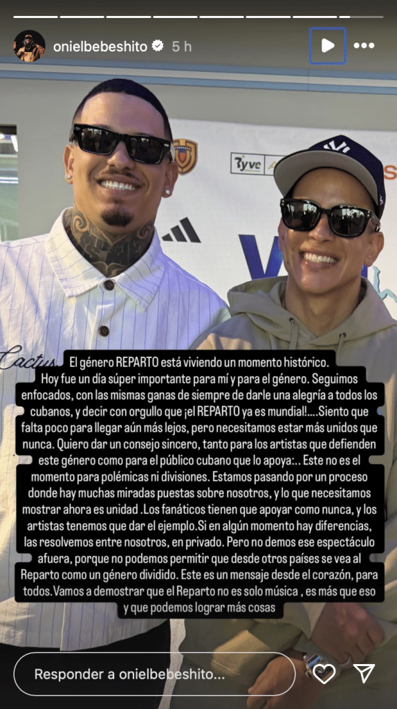 Además, Bebeshito lanzó un llamado a la unidad dentro del movimiento repartero: “Siento que falta poco para llegar aún más lejos, pero necesitamos estar más unidos que nunca. Este no es el momento para polémicas ni divisiones. Estamos pasando por un proceso donde hay muchas miradas puestas sobre nosotros, y lo que necesitamos mostrar ahora es unidad. Los fanáticos tienen que apoyar como nunca, y los artistas tenemos que dar el ejemplo”.