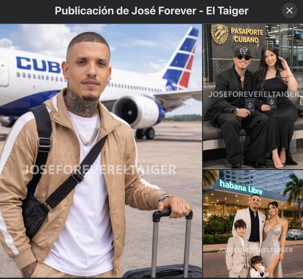 Todo comenzó con una publicación de la página de Facebook «José Forever El Taiger», que compartió imágenes de Bebeshito supuestamente sosteniendo su residencia estadounidense antes de abordar un vuelo de Cubana de Aviación. También circularon fotos del artista junto a su esposa Rachel Arderi frente al Hotel Habana Libre. El problema es que todas esas imágenes estaban claramente generadas o alteradas con inteligencia artificial.