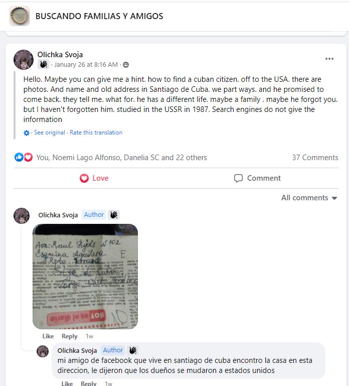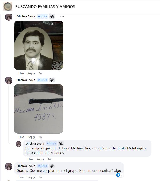 Entre las últimas grandes historias de búsqueda entre todos esos que andan en el grupo buscando familias y amigos, seleccioné esta, que por alguna razón no dicha, parece ser una vieja historia de amor. Una historia de amor – es probable que no lo sea y pido disculpas por ello – entre una ciudadana rusa y un ciudadano cubano.