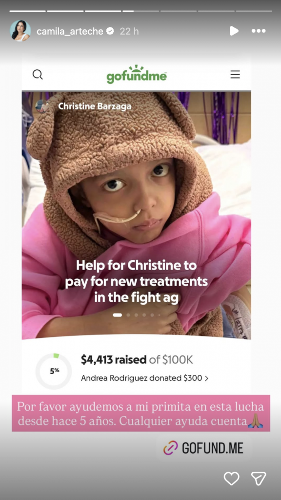 Con su publicación, Camila Arteche se suma a otras figuras públicas que utilizan su visibilidad para amplificar causas personales y humanitarias. En este caso, el objetivo es claro: reunir fondos que permitan a Christine continuar su tratamiento y mantener viva la esperanza de recuperación.