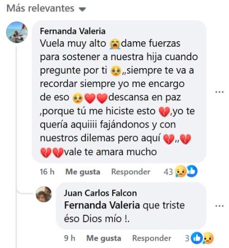 “Vuela muy alto. Dame fuerzas para sostener a nuestra hija cuando pregunte por ti. Siempre te va a recordar, siempre, yo me encargo de eso. Descansa en paz. ¿Por qué tú me hiciste esto? Yo te quería aquí. Fajándonos y con nuestros dilemas, pero aquí. Vale, te amará mucho”, expresó por su parte en Facebook la madre de Valeria, la hija del joven chofer fallecido.