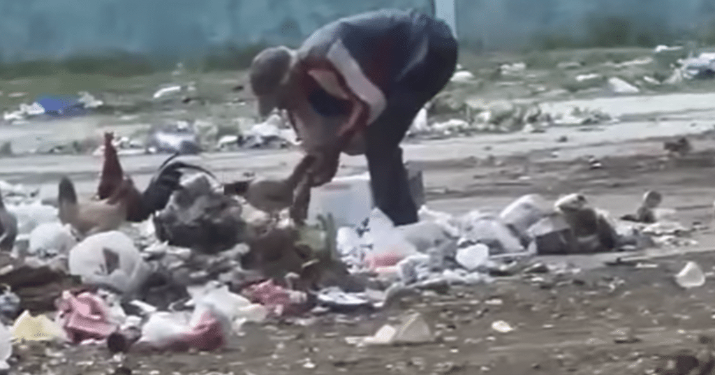 En el material se observa al hombre manipulando desechos entre bolsas rotas, envases plásticos y restos orgánicos, mientras animales también merodean el lugar. No hay información confirmada sobre la identidad del anciano ni sobre el lugar exacto donde fue grabado el video.