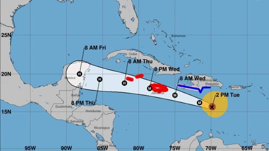 Se emitió una advertencia de huracán para Jamaica y una alerta para Gran Caimán, Pequeño Caimán, Caimán Brac y toda la costa sur de Haití.