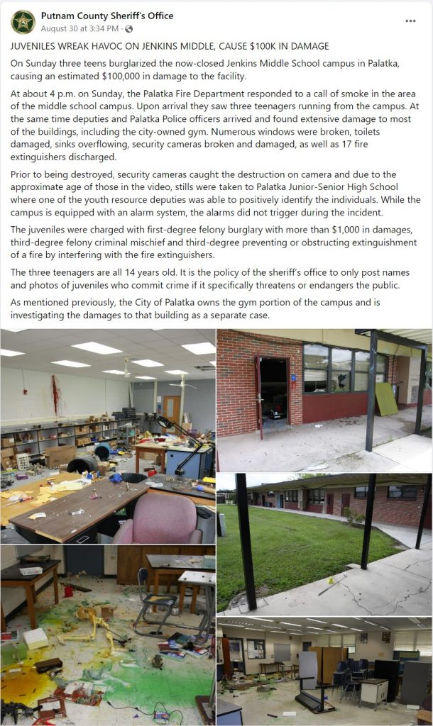 Si el daño en los Miccosukee fue de apenas $ 1,100 dólares, siga leyendo y encontrará el reporte de tres adolescentes que dejaron daños en su escuela secundaria por valor de 100 mil.