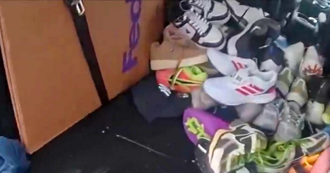Al revisar la camioneta en que se movilizaban, con placas de fuera del estado, los agentes encontraron pilas de zapatos robados, etiquetas de precio cortadas en el piso y 34 billetes de 100 dólares en la billetera de uno de los sospechosos.