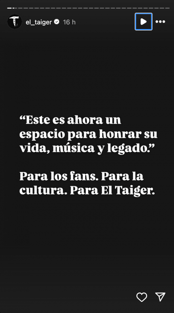 Desde las historias de Instagram, se publicó una extensa explicación sobre el uso que tendrá el perfil a partir de ahora, destacando que su propósito será rendir homenaje a José Manuel Carvajal Zaldívar, nombre real de El Taiger.