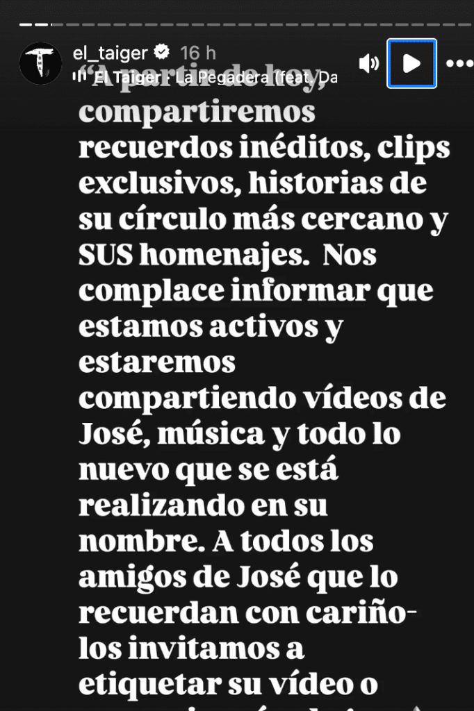 “A partir de hoy compartiremos recuerdos inéditos, clips exclusivos, historias de su círculo más cercano y sus homenajes. Nos complace informar que estamos activos y estaremos compartiendo videos de José, música y todo lo nuevo que se está realizando en su nombre”, añadía el mensaje.
