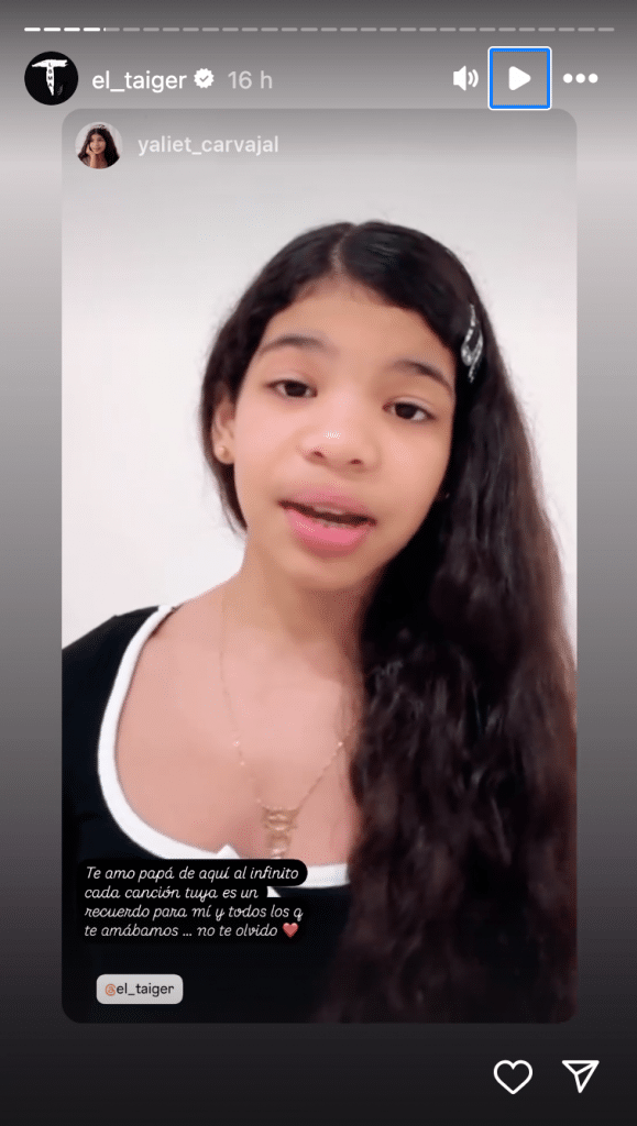 Entre los primeros en reaccionar estuvo su hija mayor, Yaliet Carvajal, quien en una historia escribió: “Te amo, papá, de aquí al infinito. Cada canción tuya es un recuerdo para mí y para todos los que te amábamos… No te olvido”.