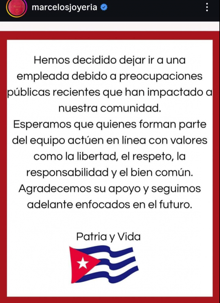 La empleada ya no trabaja en la joyería después de que su nombre y sus vínculos familiares en Cuba se hicieran públicos en redes y la presión se trasladara directamente hacia el negocio.
