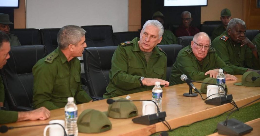 Según precisó la cuenta de la Presidencia de Cuba en X, Díaz-Canel encabezó “una jornada de preparación” en la Zona de Defensa “Armada” en el capitalino municipio del Cerro.