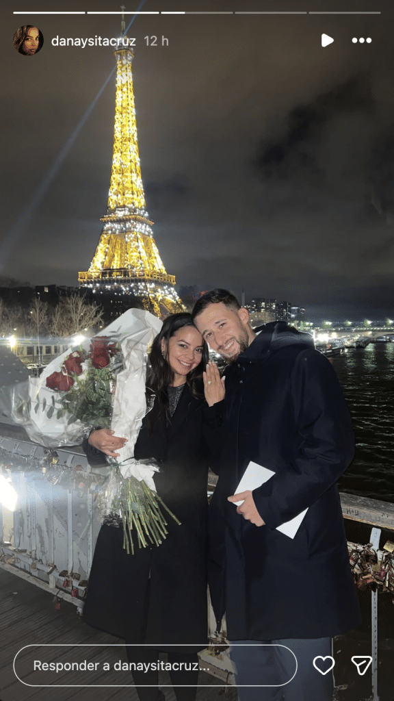 La propuesta tuvo lugar a bordo de un barco-restaurante que recorría el río Sena, en una escena que parecía sacada de una película. En el video, compartido en sus redes sociales, se aprecia a Danay visiblemente emocionada mientras recibe el anillo, rodeada por el brillo nocturno de uno de los símbolos más universales del amor.
