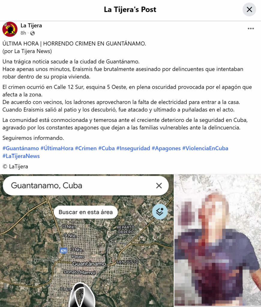 Horas antes, en Guantánamo, la violencia alcanzó un nivel aún más brutal. Eraismis, un vecino de la ciudad, fue asesinado a puñaladas dentro de su vivienda tras sorprender a ladrones que habían entrado aprovechando un apagón nocturno. El crimen, ocurrido en la oscuridad total de Calle 12 Sur y 5 Oeste, dejó a los residentes conmocionados y con la sensación de que ni siquiera el hogar ofrece ya refugio.