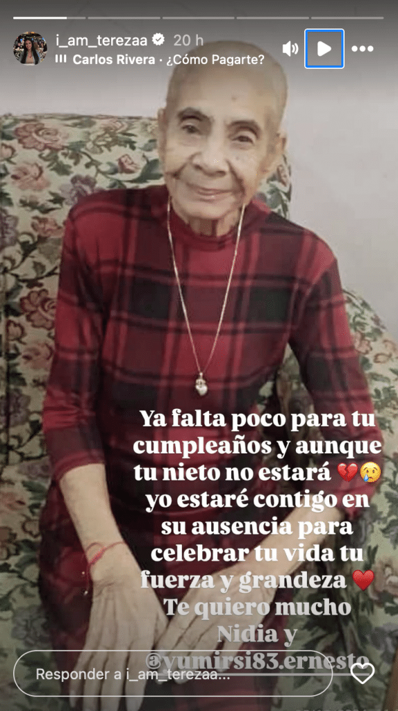 “Ya falta poco para tu cumpleaños, y aunque tu nieto no estará, yo estaré contigo en su ausencia, para celebrar tu vida, tu fuerza y grandeza. Te quiero mucho Nidia y Yumirsis”, escribió Padrón en una historia, mencionando también a la prima del fallecido reguetonero.