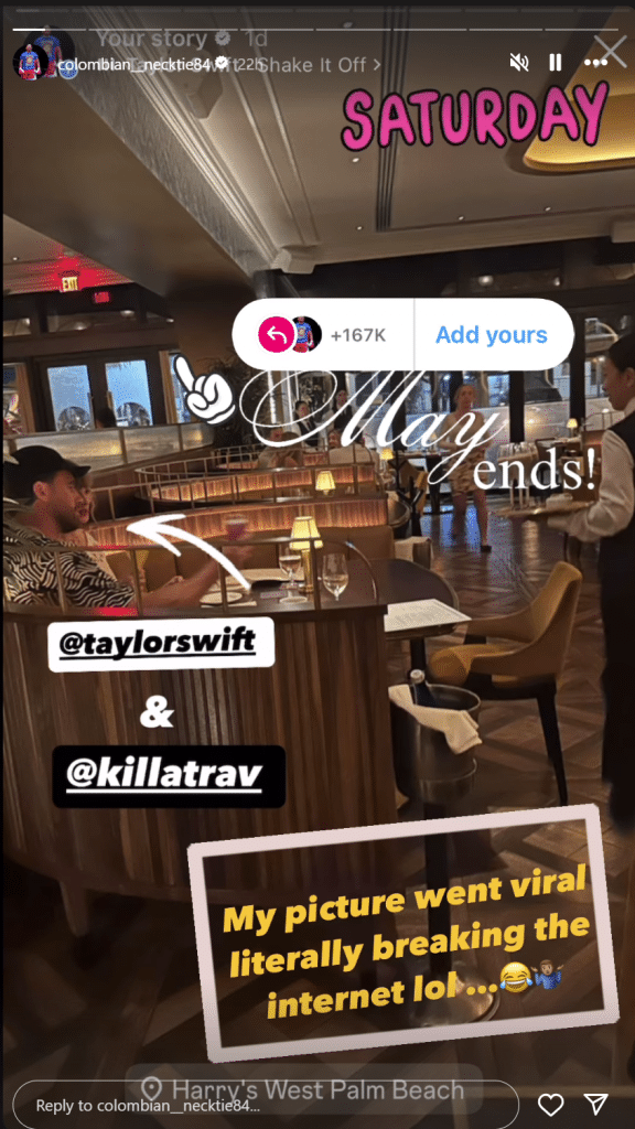 El restaurante Harry’s ya era conocido entre los sibaritas del sur de la Florida, pero ahora se ha convertido en punto de peregrinación para los fans que quieren sentarse donde lo hicieron Tay-Tay y su galán campeón del Super Bowl.