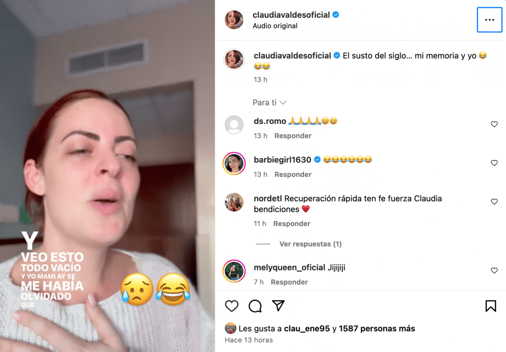 “Recuperación rápida, ten fe y fuerza, Claudia, bendiciones”; “A mí me ha pasado con mi padre, jaja. Pronta recuperación para tu mami”; “¡Pobrecita! Ay, Claudia, ¡ánimo!”; y “Te ríes, pero con carita de llanto, jjj. Ánimo, que fue solo un susto”, fueron algunos de los mensajes que recibió.