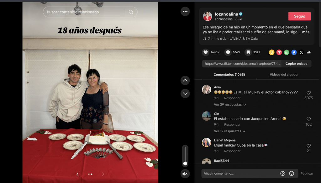 Curiosamente, uno de los videos más vistos de Lozano en TikTok —con 7,5 millones de visualizaciones— muestra imágenes de su embarazo junto a Mulkay y los primeros años de Samuel, mezclando nostalgia con humor, una fórmula que le ha devuelto la popularidad entre distintas generaciones.