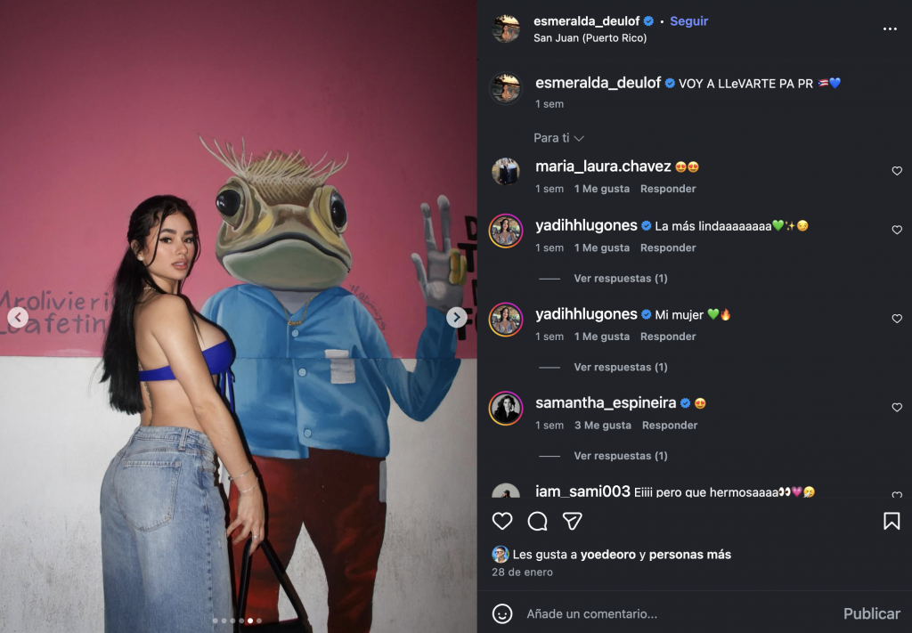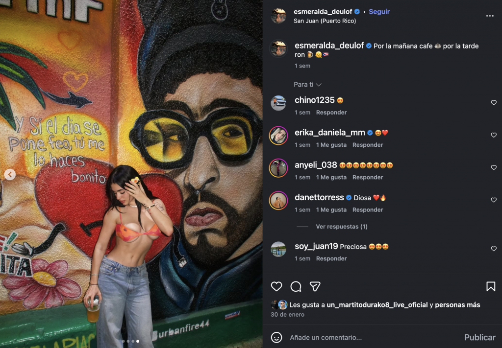 Las anfitrionas de Desvelo reforzaron la versión mostrando varias imágenes que, según explicaron, corresponden a finales de enero. En ellas se aprecia al cantante en un aeropuerto, así como una publicación (ya eliminada) en la que Charly aparece posando frente a un mural en Puerto Rico, el mismo lugar exacto que Esmeralda escogió para una sesión de fotos publicada en su cuenta de Instagram. Para muchos usuarios, la coincidencia no fue casual.