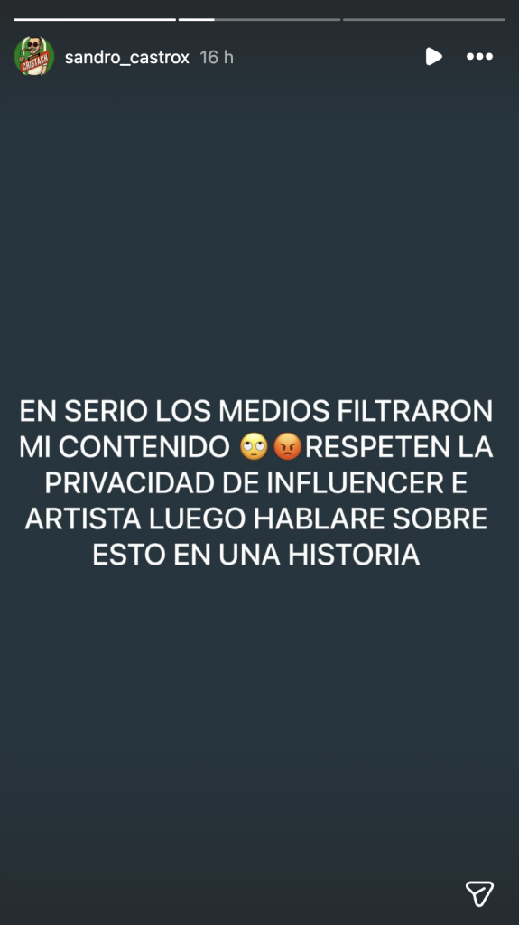 Horas después de la difusión, el propio Sandro Castro reaccionó a la filtración a través de sus historias de Instagram. Aunque no ofreció detalles concretos sobre quién habría compartido el contenido sin su consentimiento, sí dejó entrever su molestia por lo ocurrido.