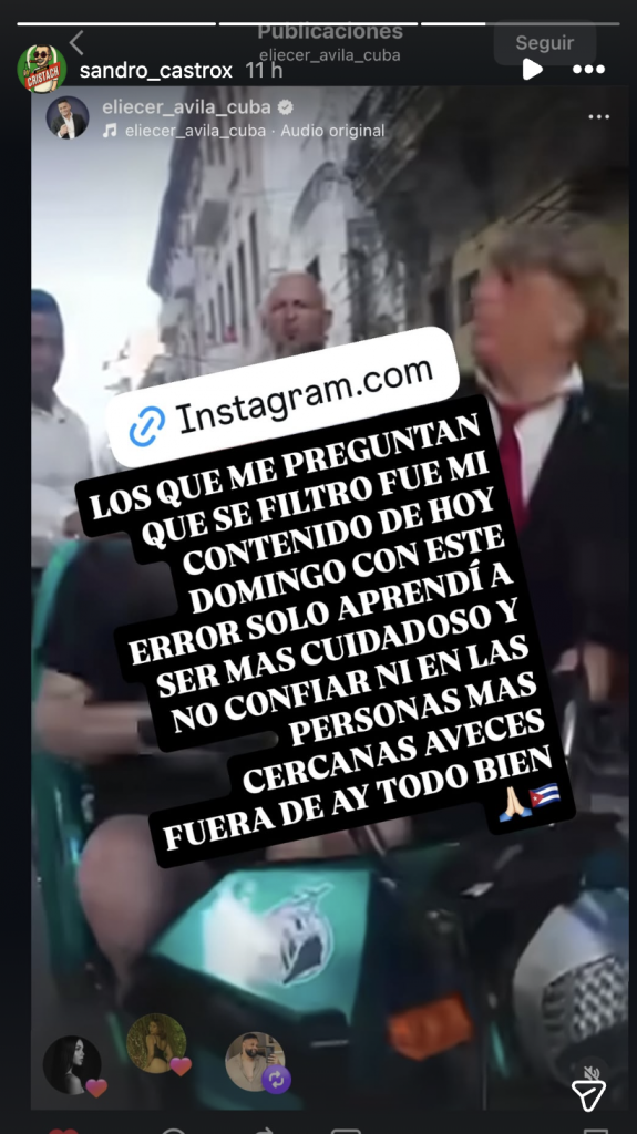 “Un seguidor nos manda esto desde Cuba… dice que por ‘indecisión’ de uno de los protagonistas, este video no se iba a publicar, pero un pariente que estuvo en el proceso se lo pasó y él lo filtró”, escribió el activista, sugiriendo tensiones internas en el entorno de Sandro.