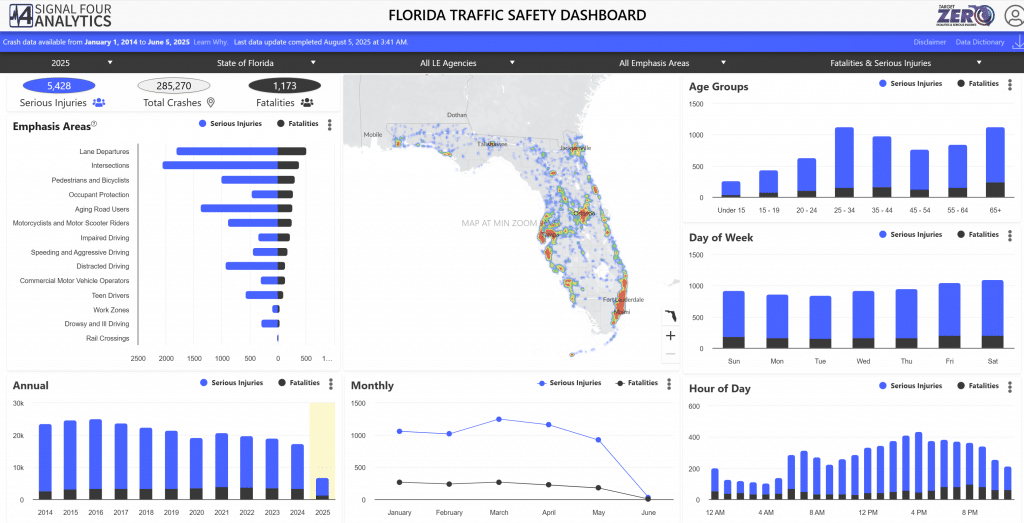 En lo que va de 2025, Florida ha registrado una significativa reducción en la cantidad de muertes y lesiones graves por accidentes de tráfico, según datos preliminares del informe estatal de seguridad vial elaborado por Signal4 Analytics. Hasta el 3 de junio, se reportaron 1,148 muertes y 5,283 lesiones graves, marcando una disminución de más del 60% en comparación con los años anteriores para ese mismo periodo.
