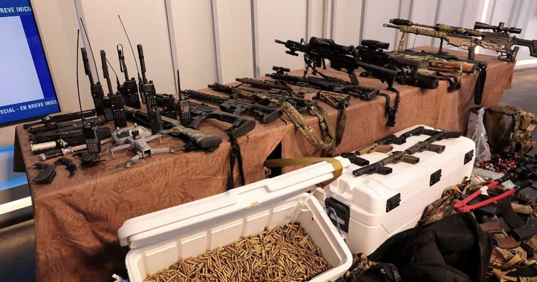 Álvarez detalló que “una de las pistolas ocupadas tenía capacidad para perforar chalecos antibalas”, y que también se ocuparon “un dron con dos cámaras, diez equipos de comunicación, cuchillos de comando, una planta eléctrica portátil, una cizalla para cortar candados y emblemas identificativos, entre ellos el del denominado movimiento contrarrevolucionario 30 de Noviembre”.