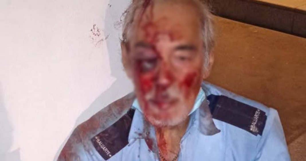 Cruz Peralta compartió además una imagen en la que se ve el custodio salvajemente golpeado (con un ojo cerrado) y ensangrentado, mientras intentaba tomar agua.
