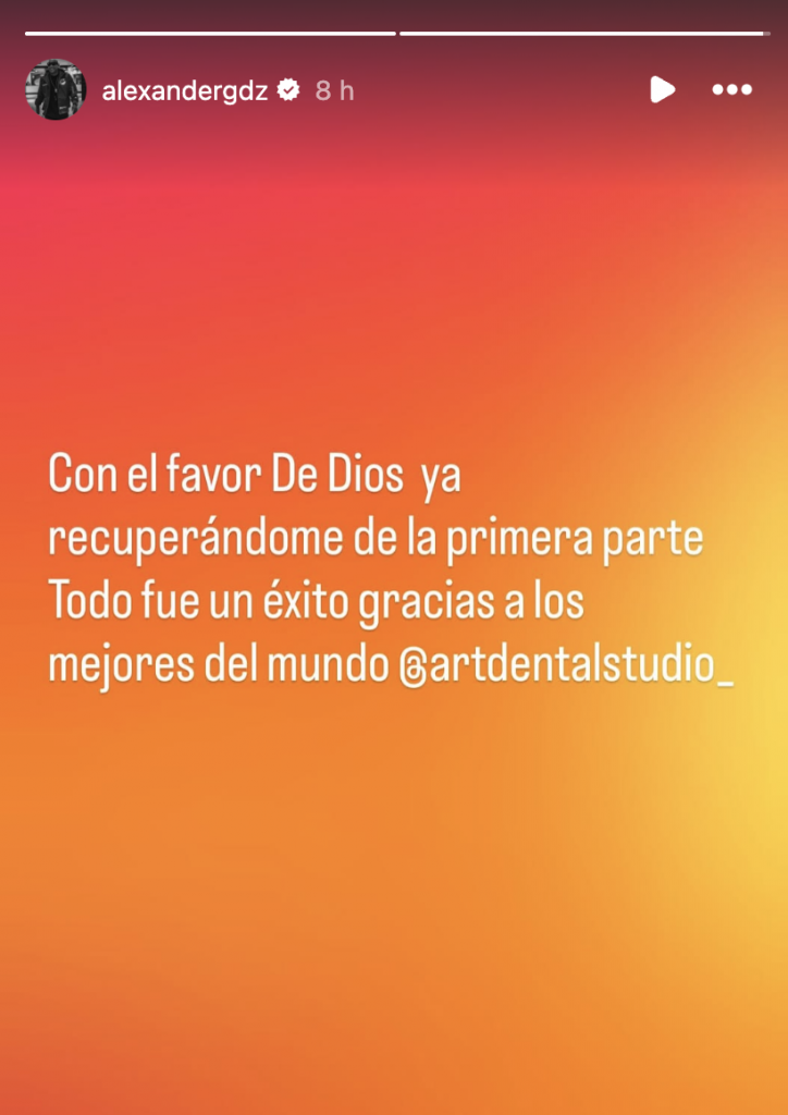 Horas después de la cirugía, el cantante volvió a aparecer en redes sociales para tranquilizar a quienes estaban pendientes de su evolución. En una nueva historia, confirmó que el procedimiento había salido bien y expresó su agradecimiento al equipo médico que lo atendió. “Con el favor de Dios, ya recuperándome de la primera parte. Todo fue un éxito, gracias a los mejores del mundo”, escribió, acompañado de una imagen sencilla, pero cargada de alivio.