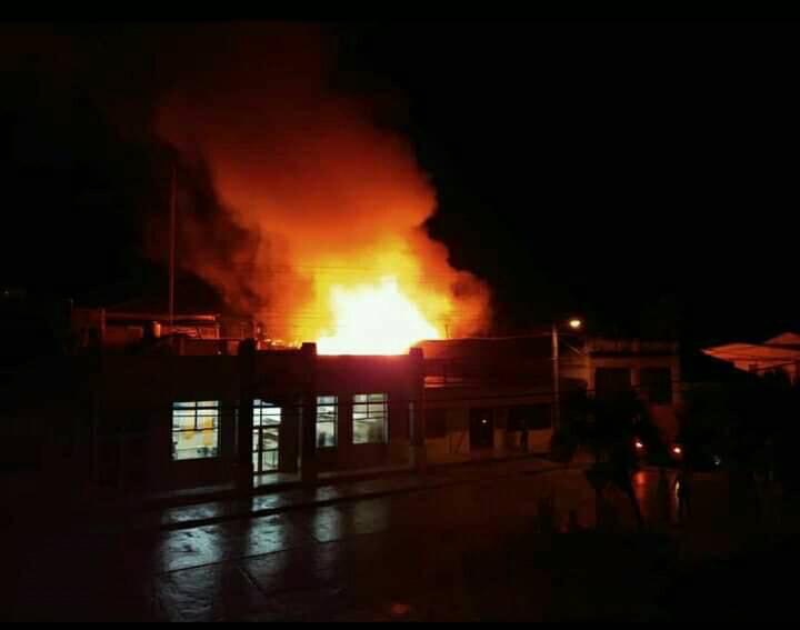 Videos compartidos en redes sociales muestran enormes llamas que se elevan al menos tres metros por encima del techo de varias casas en medio de la oscuridad, mientras una mujer llora pidiendo que alguien haga algo.
