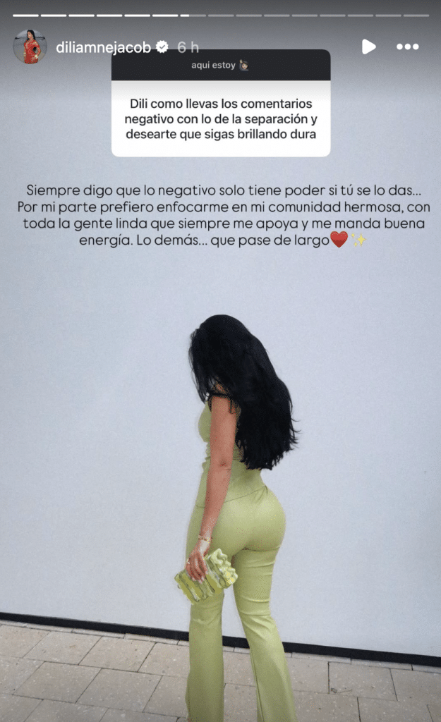 La interacción fue directa, sin rodeos ni filtros. Una de las usuarias quiso saber cómo maneja los comentarios negativos que le llegan desde la noticia de la ruptura. La respuesta de La Dura fue serena, casi pedagógica: “Siempre digo que lo negativo solo tiene poder si tú se lo das… Por mi parte, prefiero enfocarme en mi comunidad hermosa, con toda la gente linda que siempre me apoya y me manda buena energía. Lo demás… que pase de largo”.