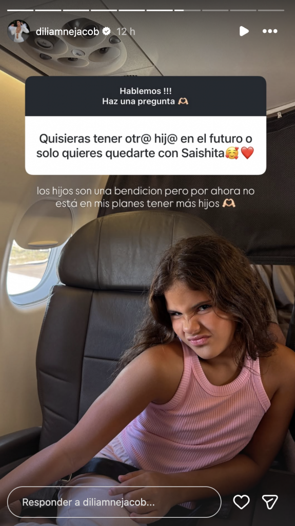 Fiel a su estilo directo y sin rodeos, la creadora de contenido respondió con claridad y ternura a través de sus historias: «Los hijos son una bendición, pero por ahora no está en mis planes tener más hijos» . La respuesta, acompañada de una tierna fotografía de su hija Saisha haciendo un gesto pícaro dentro de un avión privado, dejó claro que la maternidad no es una prioridad inmediata para ella, al menos por el momento.