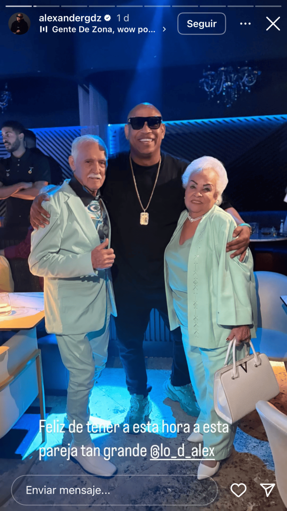 Y es que estos septuagenarios cubanos visitaron Lo D´Alex, y fue el propio Delgado quien compartió una fotografía con ambos en sus historias de Instagram: “Feliz de tener a esta hora a esta pareja tan grande”.