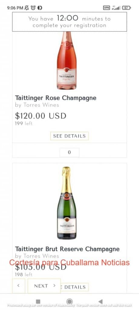 Entre las bebidas, la más cara es un Champagne Rosa Taittinger, que se ofrece a la venta por $120.00 usd