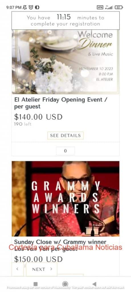 El precio de la velada de inauguración difiere de la gala del cierre, que contará con la presencia de la orquesta de Los Van Van y costará la entrada $150 usd.