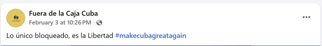 La polémica en torno a la gorra no surge en el vacío. Está directamente asociada al proyecto Fuera de la Caja Cuba, un colectivo de jóvenes creadores que, desde dentro de la Isla, ha utilizado ese lema como consigna comunicacional en redes sociales para denunciar la falta de libertades, la censura y el deterioro de las condiciones de vida.