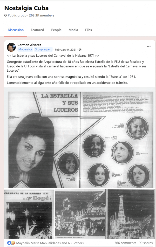 Hay muertos que no se van del todo porque el pueblo los resucita cada cierto tiempo con amor. Georgette Álvarez Marante, aquella estudiante de arquitectura, vecina de Marianao, reina de un carnaval que ya no existe, es uno de ellos. Quizás por eso su recuerdo resiste el paso del tiempo, como resisten los rostros que brillan apenas un segundo pero nos acompañan toda la vida.