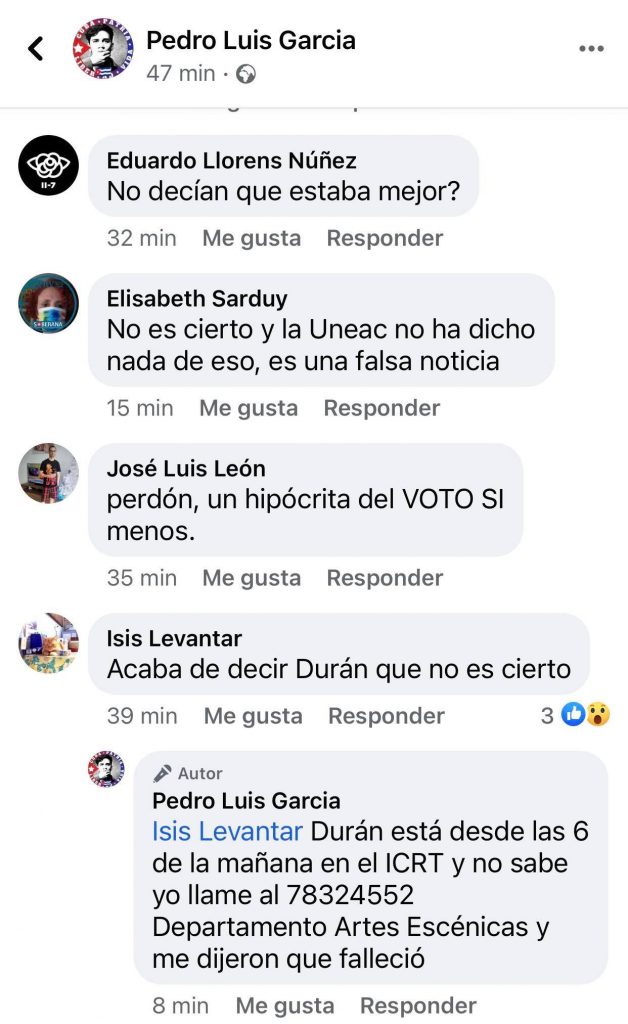 El hecho, lamentable, condenable incluso, de que un medio oficialista propague noticias falsas de este tipo, y más que nada la muerte de uno de los actores cubanos más queridos, sin dudas refleja el estado en que anda el periodismo, la información y la comunicación en la isla, necesitan una transformación urgente; pero urgente.