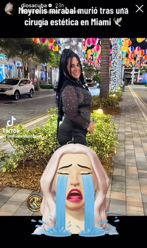 De acuerdo con testimonios de allegados citados por la misma fuente, Mirabal, de 40 años y oriunda de Pinar del Río, habría fallecido en el salón de operaciones de una conocida clínica de la Ciudad del Sol.