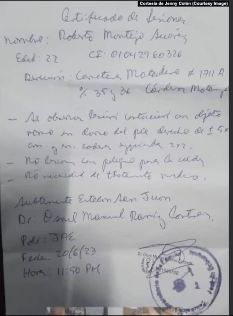 Sin embargo, al igual que la denuncia hecha por Kiriam, dijo que en la comisaría, las autoridades las trasladaron a un policlínico donde recibieron certificados de lesiones. Sin embargo, no se les permitió presentar una denuncia formal sobre el incidente porque, según las autoridades, sus lesiones eran leves. Colón lamentó que las autoridades solo acepten denuncias en caso de lesiones más graves, como brazos partidos o heridas de puñal, y comenta que suelen ignorarlos.