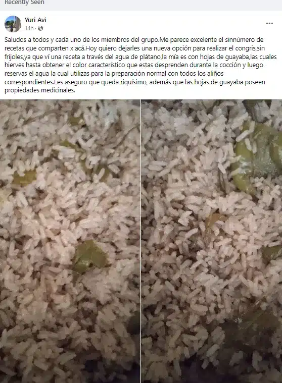 Foto: Un plato de congrí hecho con hojas de guayaba hervidas. Yuri Avi / Facebook