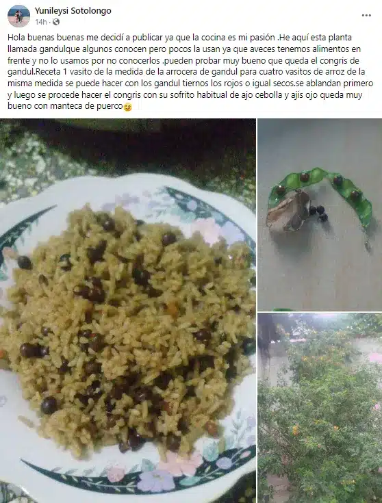 Foto: Congrí con gandules. Yunileysi Sotolongo / Facebook.