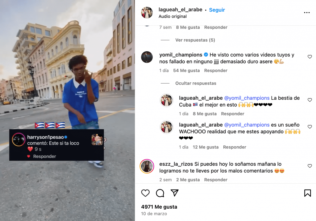 Como hizo con los otros artistas, Lagueah también compartió un video reaccionando al comentario de Yomil y agradeciendo el respaldo de los tres cubanos: “Me siento muy orgulloso de mí y de lo que estoy logrando con tan solo 6,000 seguidores”.