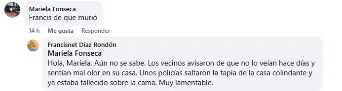 Si bien en el apartado de comentarios de su publicación el también reportero local señaló que todavía no se conocen las causas del fallecimiento de González, se sabe que fue una alerta de los vecinos, quienes llevaban días sin verlo y notaron un olor desagradable proveniente de su casa, lo que motivó la intervención de las autoridades.