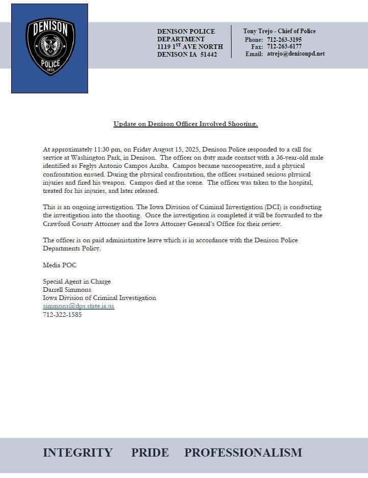 La comunidad latina y no latina en Denison, Iowa, está sacudida por la muerte de Feglys Antonio Campos Arriba*, un cubano de 36 años que perdió la vida el pasado 15 de agosto durante un tiroteo con la policía local en el Parque Washington. Ahora, mientras la investigación oficial sigue en curso, vecinos y compatriotas organizan una recaudación de fondos para poder darle un entierro digno.
