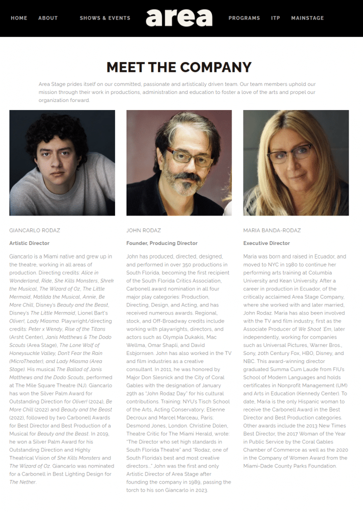 «John y Maria Rodaz han ayudado a desarrollar Miami como un centro para grandes artistas con su Area Stage Theatre Company & Conservatory desde 1989. Ahora, necesitan apoyo de su ciudad mientras enfrentan dificultades devastadoras», señala el Miami Hurricane.